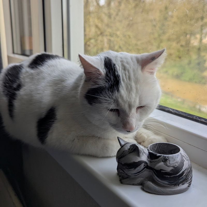 De Lichtbrengers zijn meer dan alleen een houder voor een kaarsje. Of je nu op zoek bent naar een rustpuntje in je interieur of een liefdevolle plek creëert om een dierbaar katje te herinneren, deze beeldjes brengen zachtheid en troost. Steek een kaarsje aan, laat de wereld even buiten en geniet van een moment van pure rust.